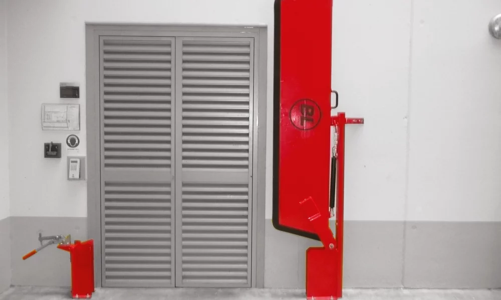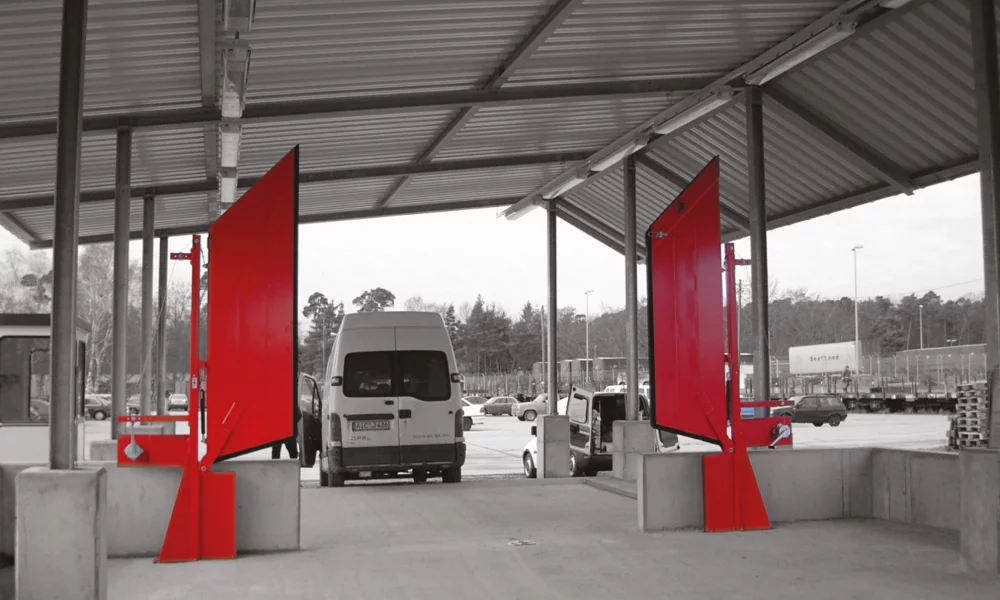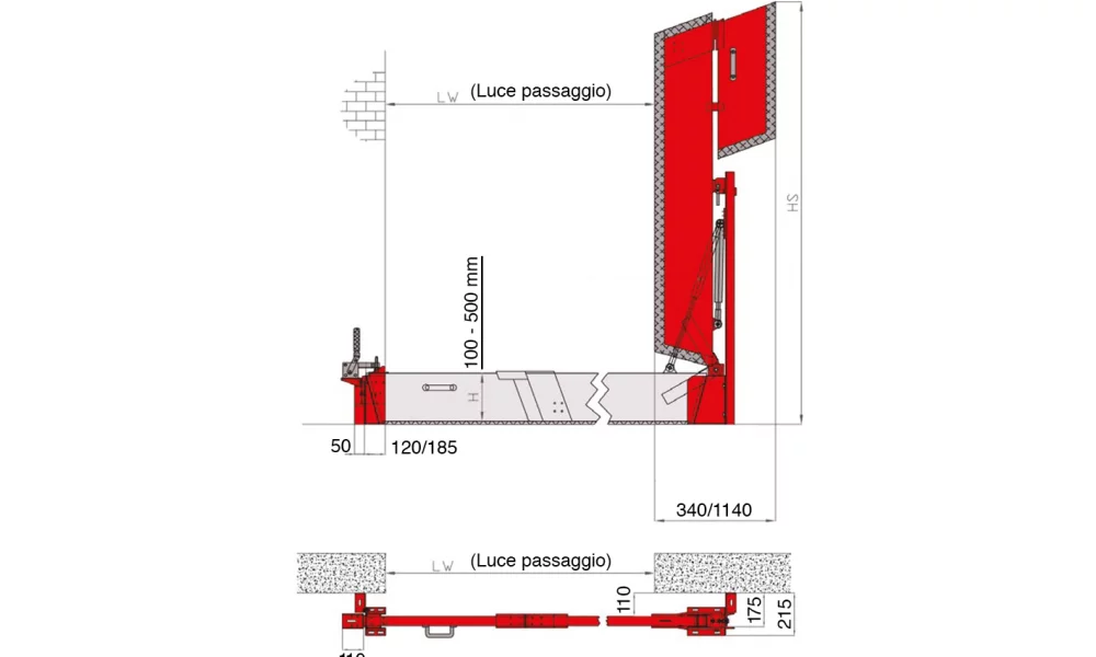 - Funktionsprinzip einer Schranke, mit Scharnier auf einer Seite