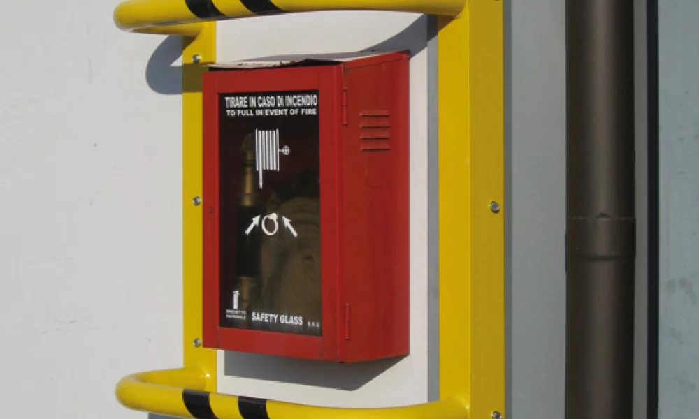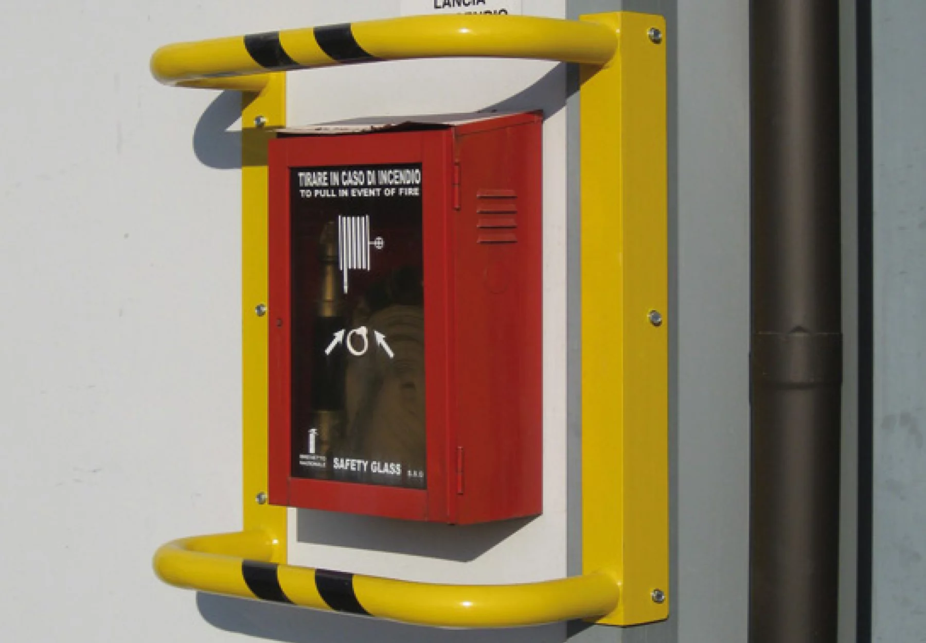 In steel, made from a single frame consisting of two very thick parallel base plates and two “C”-shaped parallel tubular elements of ø 60 mm.