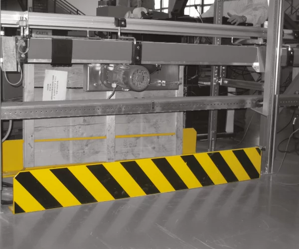 Verniciatura di alta qualità antigraffio a polveri termoindurenti in poliestere di colore giallo RAL 1023, con strisce nere oblique disposte a 45°, oppure di colore bianco RAL 9010, con strisce rosse oblique disposte a 45°.