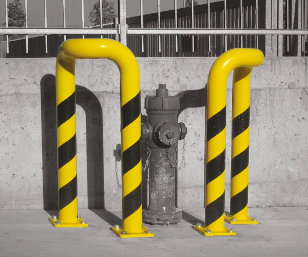 Verniciatura di alta qualità antigraffio a polveri termoindurenti in poliestere di colore giallo RAL 1023, con strisce nere oblique disposte a 45°, oppure di colore bianco RAL 9010, con strisce rosse oblique disposte a 45°.