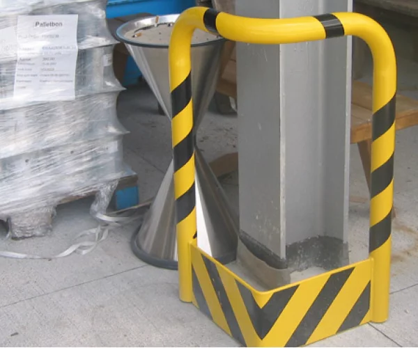Zincatura di base. Verniciatura di alta qualità antigraffio a polveri termoindurenti in poliestere resistente ai raggi UV di colore giallo RAL 1023, con strisce nere oblique disposte a 45° rifrangenti, oppure di colore bianco RAL 9010, con strisce rosse oblique disposte a 45° rifrangenti.